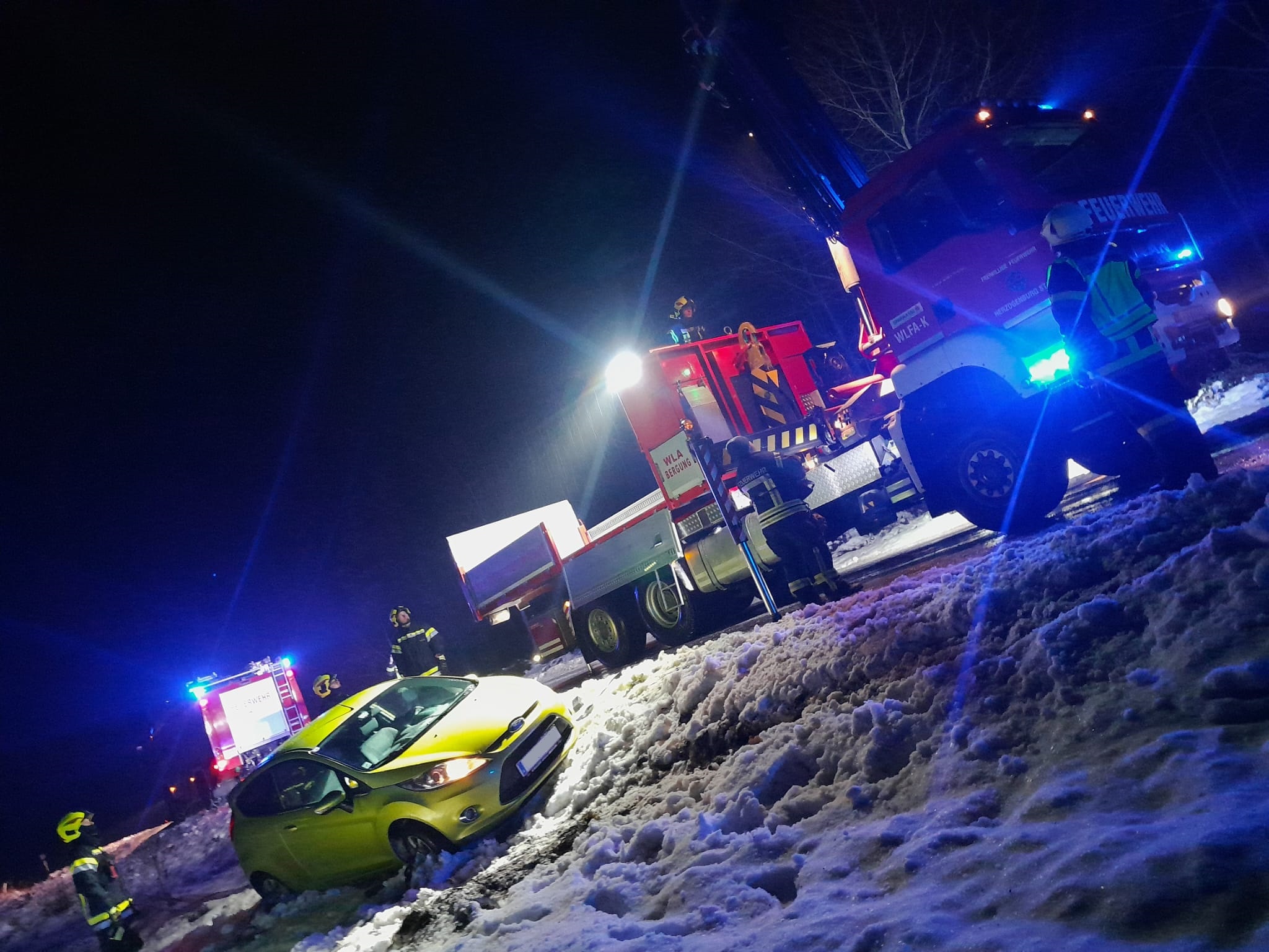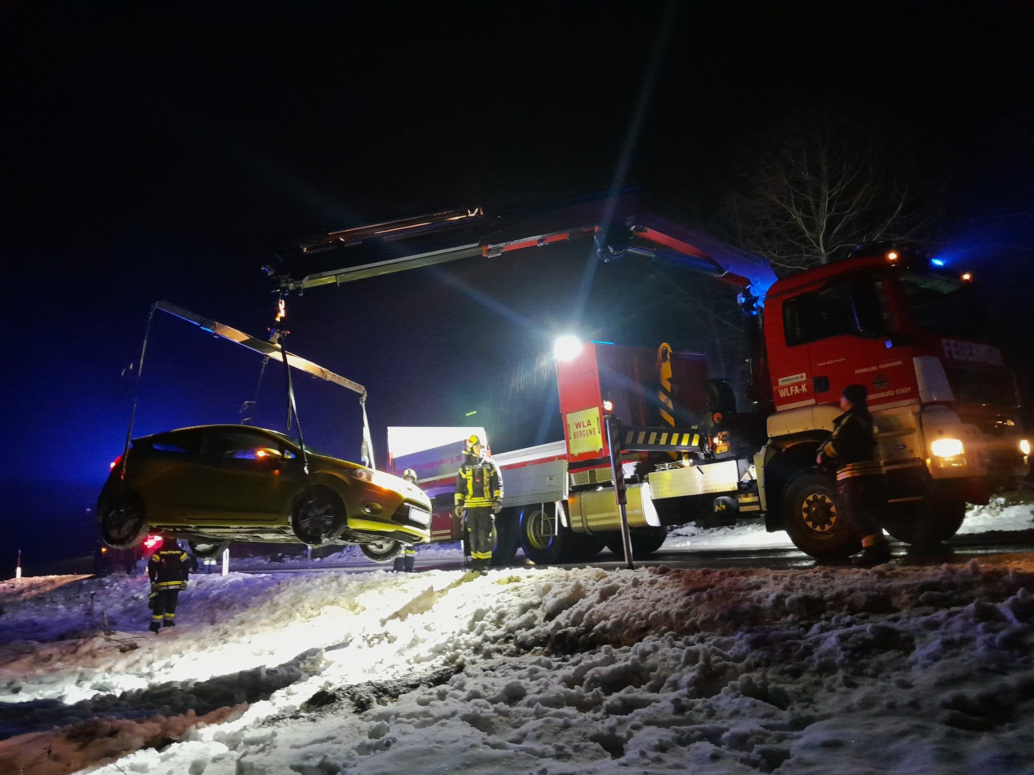 Kurz nach 3 Uhr in der Früh wurden wir zu einer PKW Bergung zwischen Winzing und Karlstetten alarmiert. Im Waldstück nach Winzing kam ein Fahrzeug von der glatten Fahrbahn ab und stürzte über eine Böschung. Das Wechselladefahrzeug von Herzogenburg konnte die Bergung mittels Kran erfolgreich ohne Schäden durchführen.