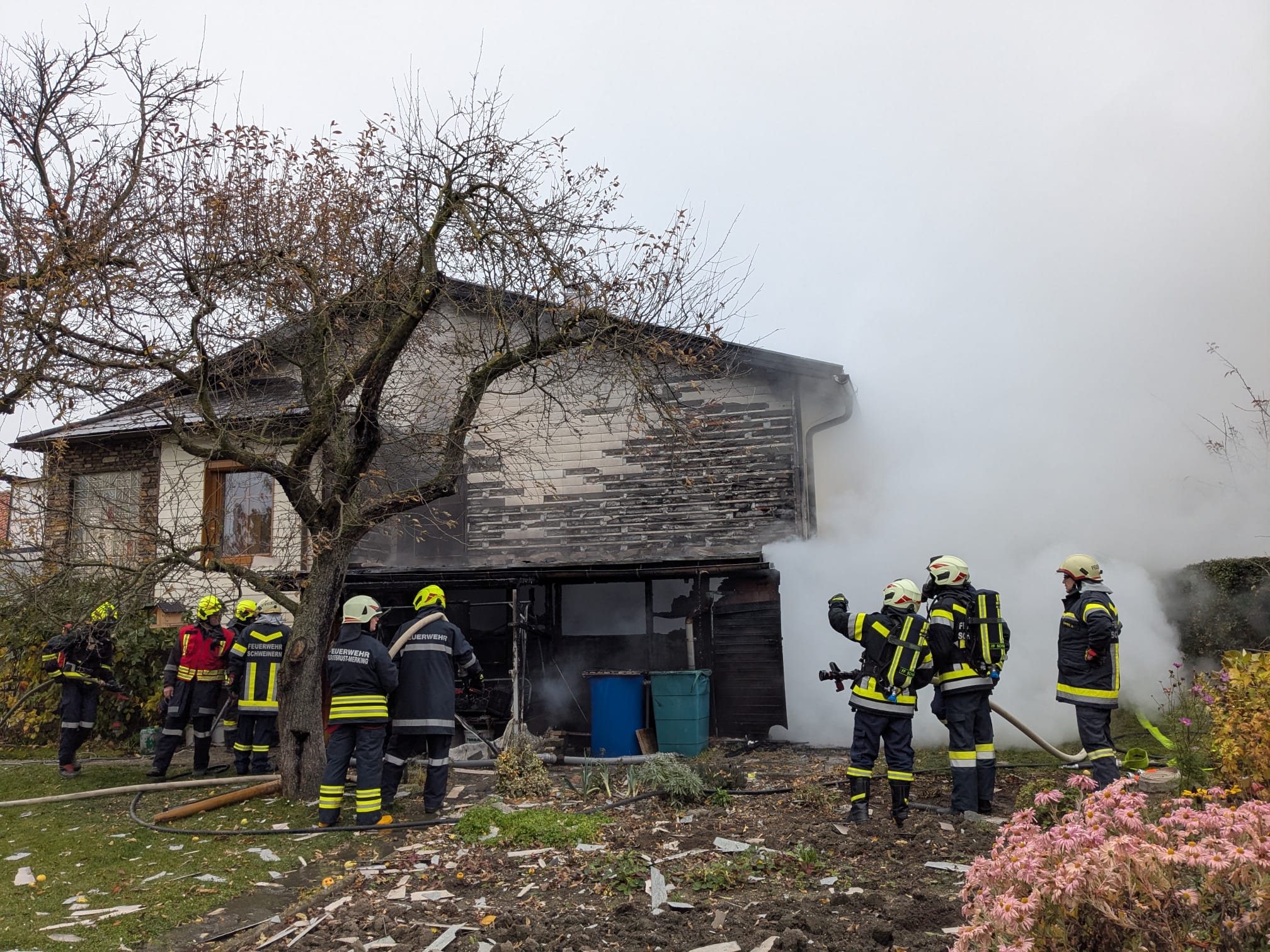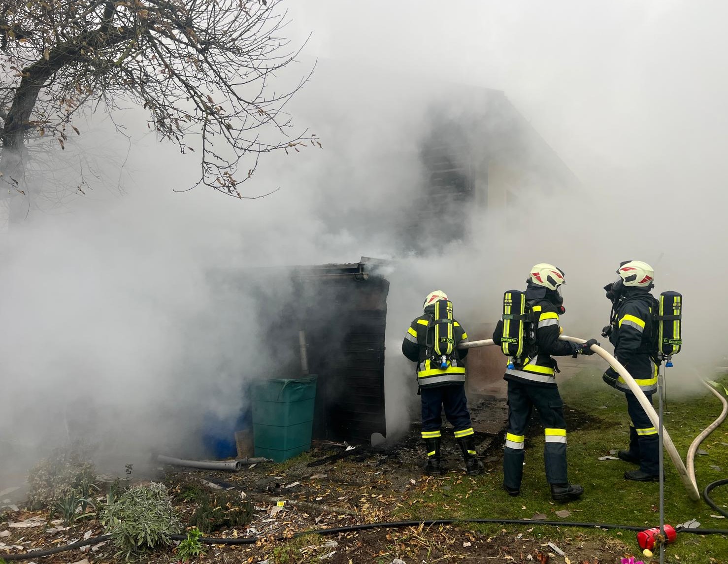 Am Vormittag des 15. November kam es in Obritzberg aus bislang ungeklärter Ursache zum Brand einer Gartenhütte. Dank der schnellen Alarmierung und dem raschen Eingreifen der Einsatzkräfte konnte Schlimmeres verhindert werden. Bereits bei der Anfahrt bemerkten die fünf eingesetzten Feuerwehren – FF Obritzberg, FF Schweinern, FF Großrust-Merking, FF Kleinrust-Fugging und FF Ambach – eine deutlich sichtbare Rauchsäule. Unverzüglich wurde unter Atemschutz mit der Brandbekämpfung begonnen, während parallel das direkt angrenzende Wohngebäude vor einem Übergreifen der Flammen geschützt wurde. Zusätzlich wurde der Innenraum des Hauses kontrolliert, um eine mögliche Brandausbreitung auszuschließen. Nach dem „Brand aus“ wurde ausgetretenes Löschwasser im Keller mittels Nasssauger entfernt und eine Brandwache eingeteilt.