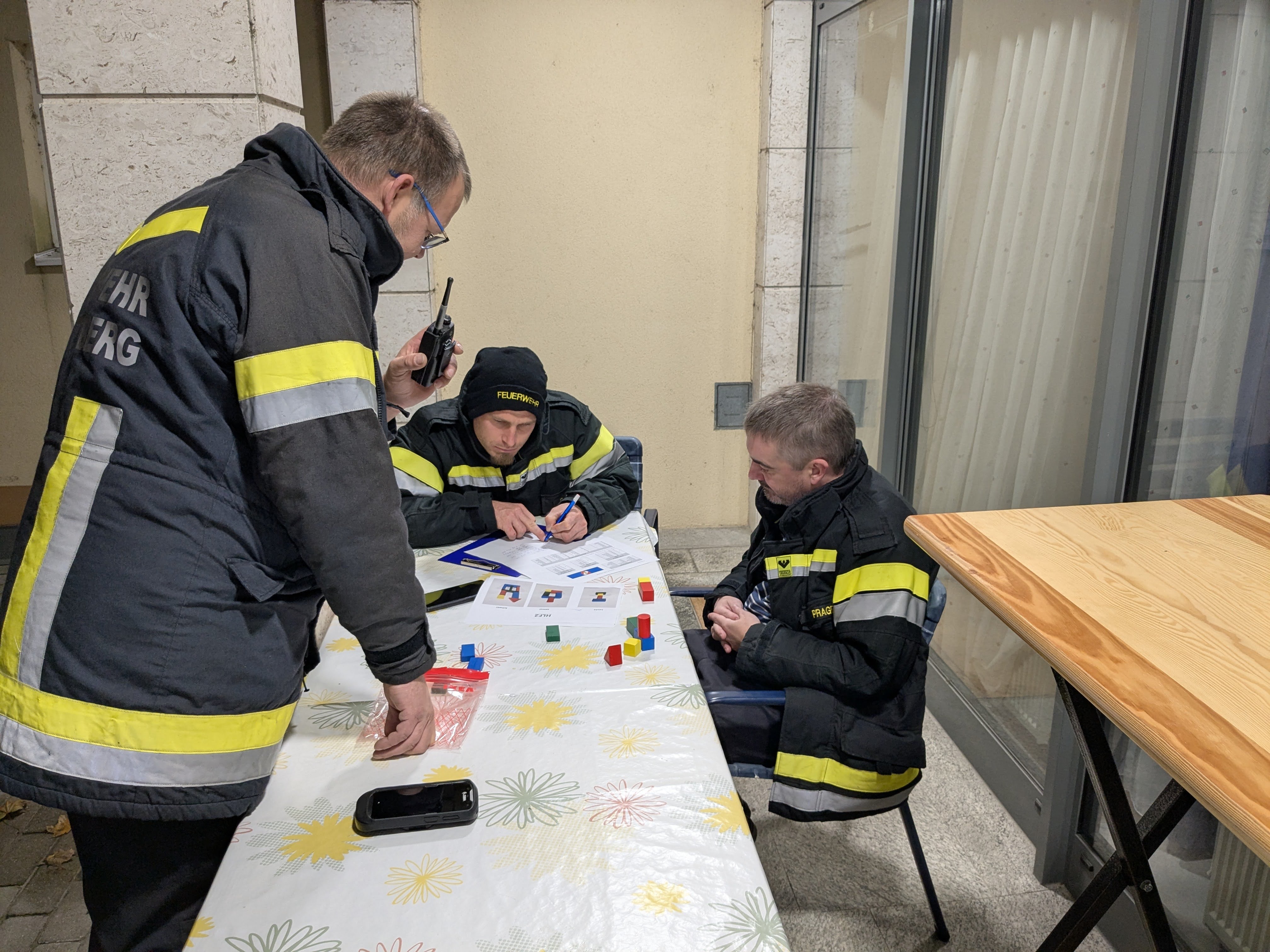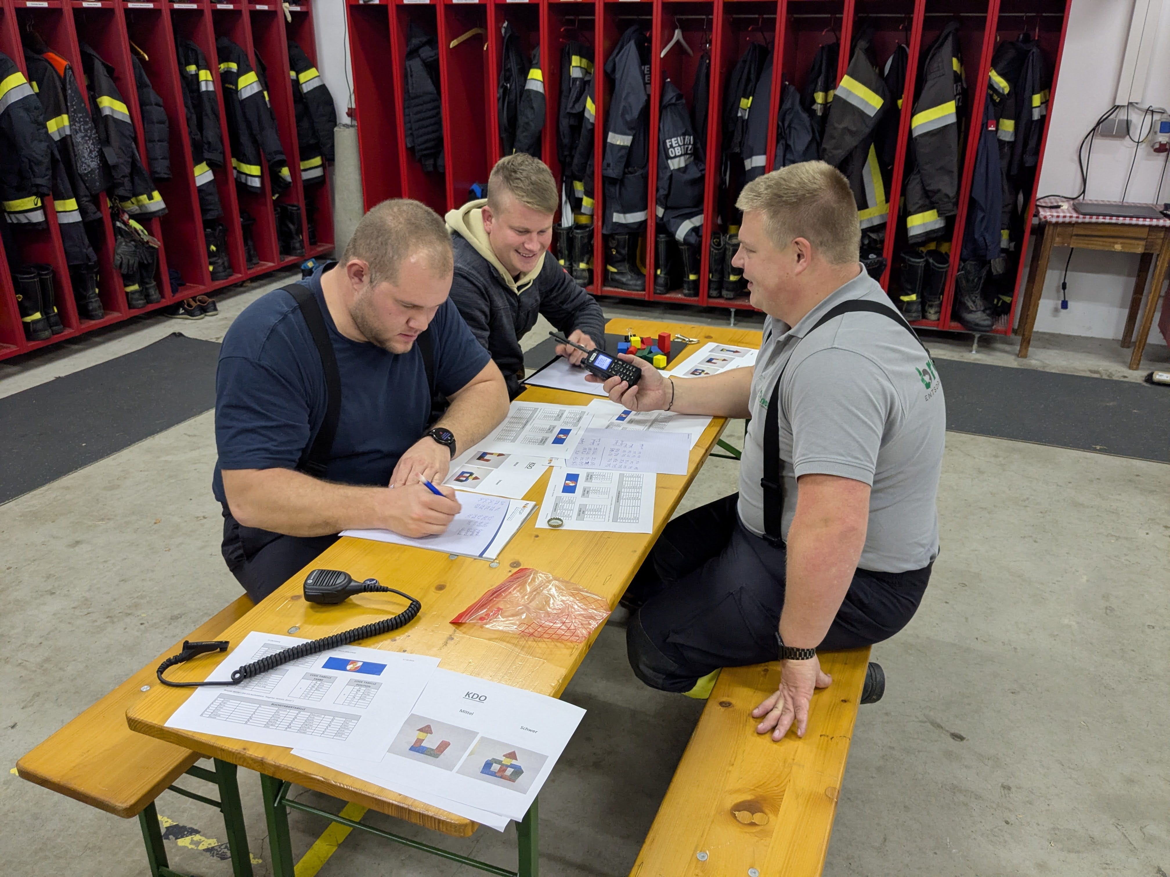 Zu Beginn gab es eine kurze Auffrischung der Grundlagen im Funksprechverkehr sowie der richtigen Handhabung und Sicherheit im Umgang mit dem Funkgerät. Anschließend folgte der praktische Teil: Die Funktrupps mussten sich gegenseitig eine verschlüsselte Bauanleitung über Funk übermitteln, anhand derer anschließend ein Bauwerk errichtet werden sollte.