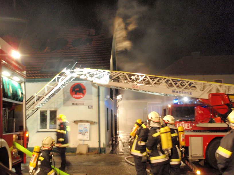 Einsatzbeschreibung: In einer Spenglerei in Klein Hain brach ein Großbrand aus. Beim Eintreffen waren bereits einige Feuerwehren im Einsatz, der Dachstuhl stand in Vollbrand. Wir stellten 3 Atemschutztrupps für die Löscharbeiten.Insgesamt waren 13 Feuerwehren mit ca. 200 Mann bei diesem Großeinsatz beteiligt. |